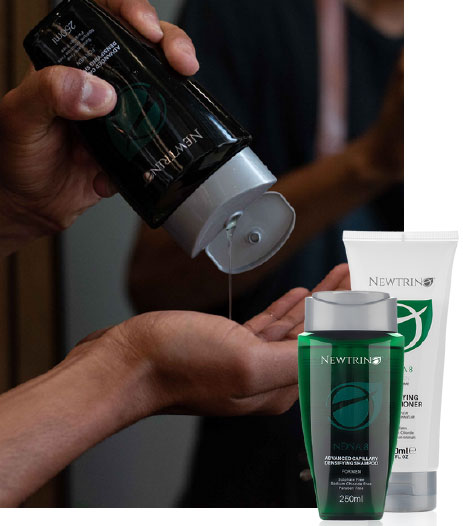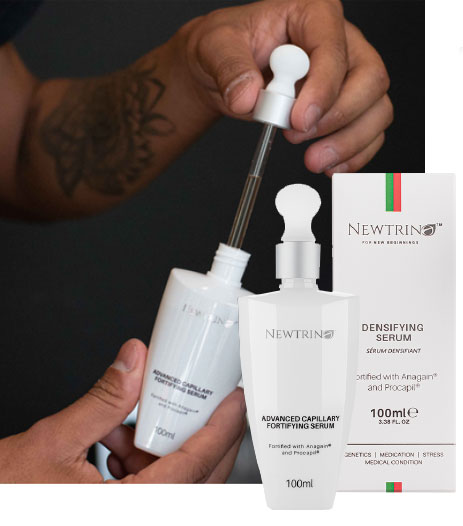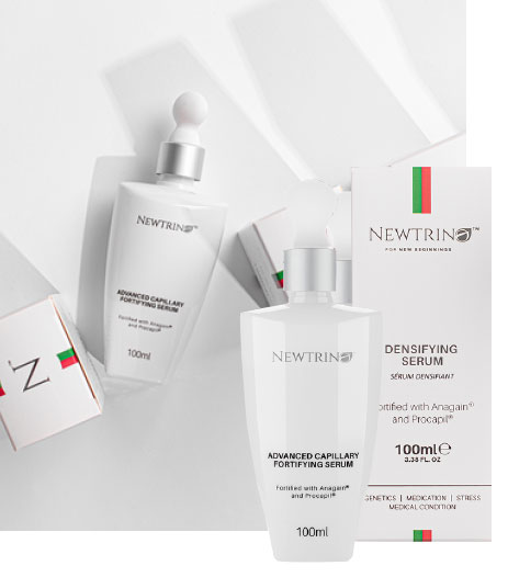 Newtrino is a hair loss range made up of Densifying Scalp Cleansers, Serums and DHT Blocking Supplements for thicker hair and to reduce shedding. It contains key ingredients including Procapil®, AnaGain® and our Newtrino™ Proprietary Herbal Blend to anchor the hair deeper for longer, prolong the growing and resting cycles of hair and renew cellular